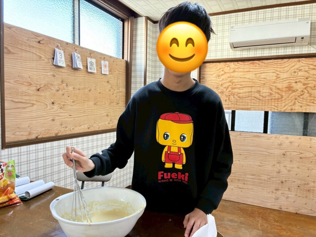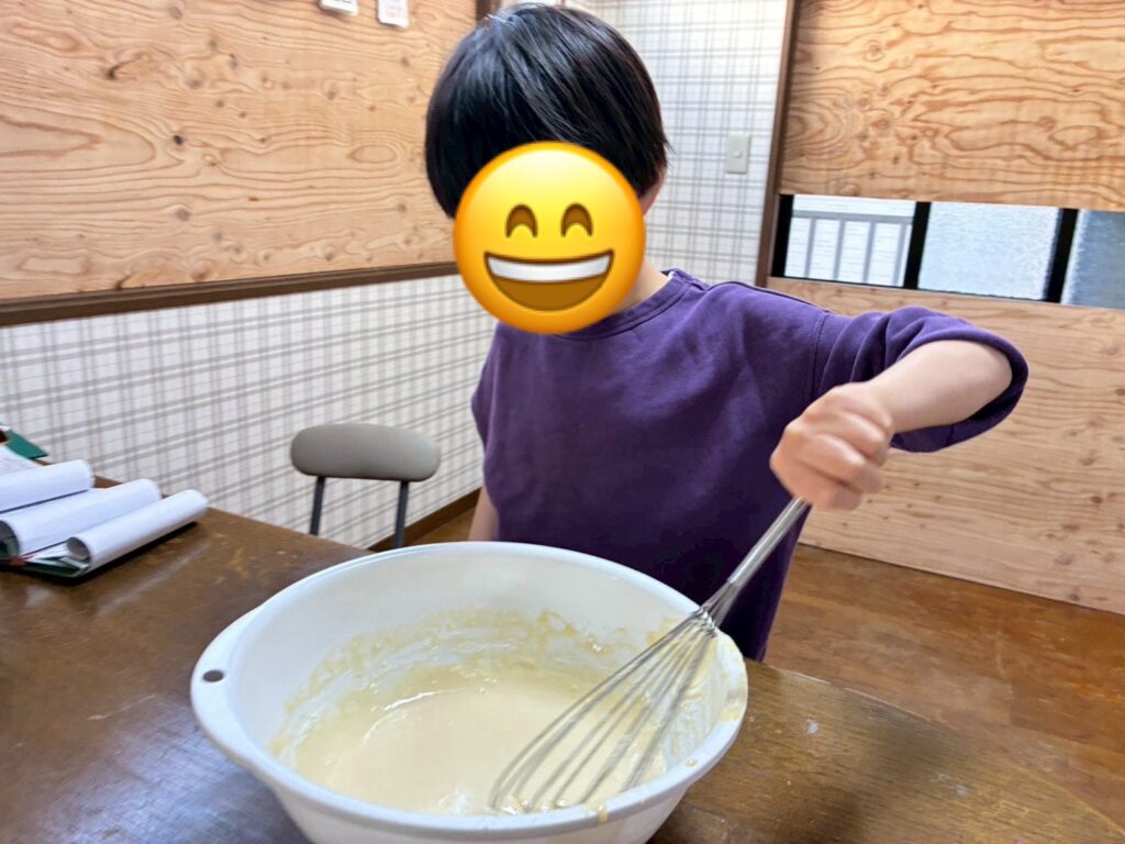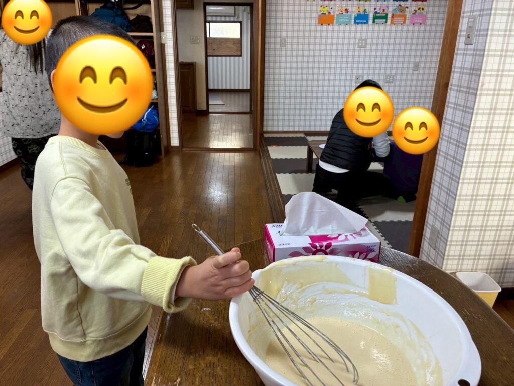 今日は、中学三年生のお兄ちゃん、お姉ちゃん達の卒業のお祝いに、ベビーカステラのクッキングをしました!(^^)!