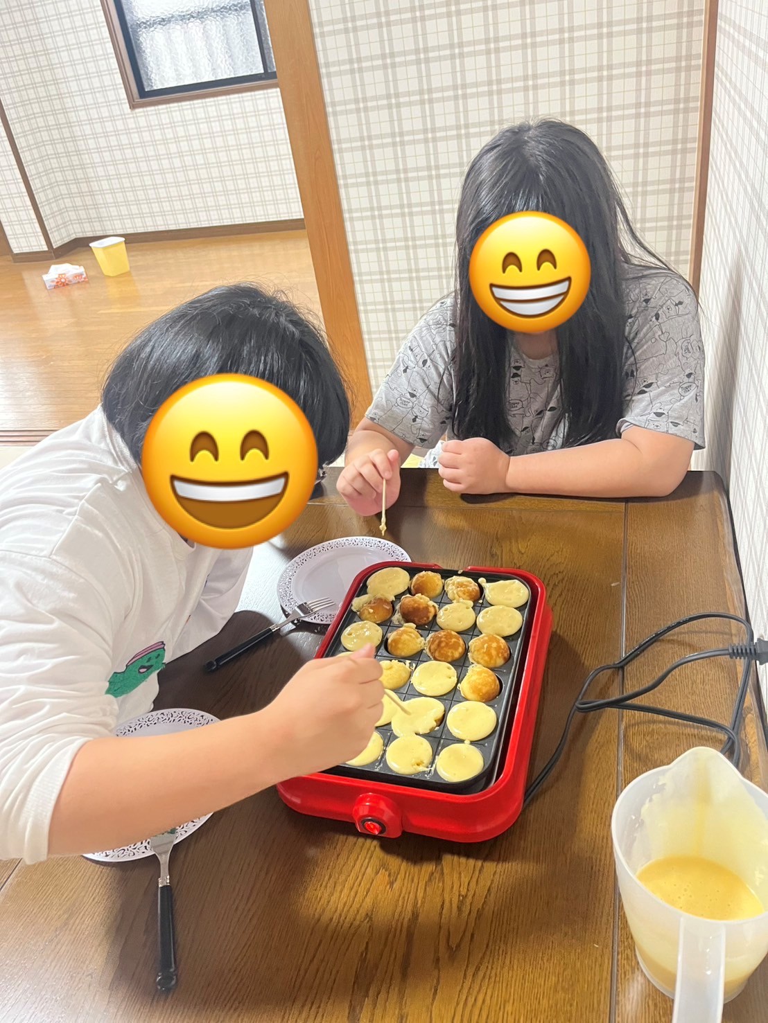 ベビーカステラ 2025-11-09 | コメントはまだありません みんな大好きなベビーカステラをクッキング(⌒∇⌒) くるくる上手に焼いてみんな出来立てをもぐもぐパクパク!! いい香りがひろがっていました~😃 きれいに焼けてますね✨楽しくクッキングできていました♪ また作ろうね★ すこやかな庭 072-320-7855 児童の様子