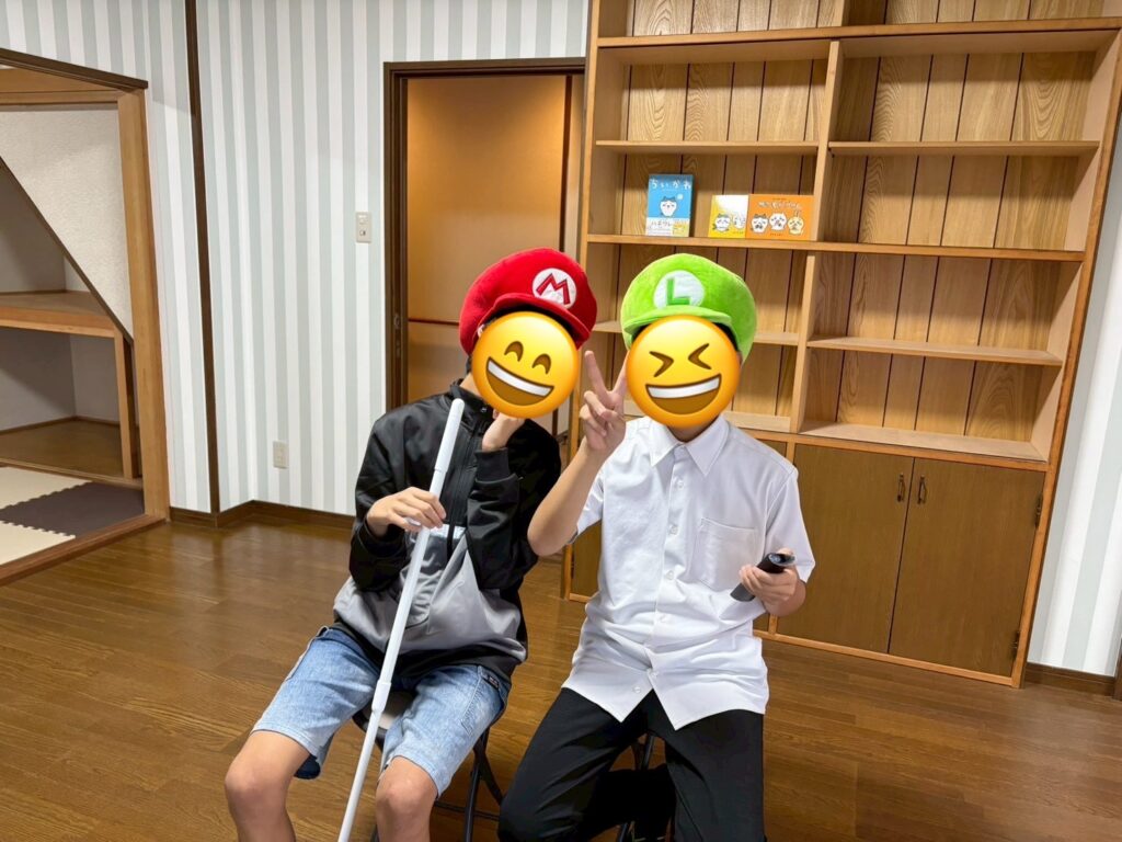 おともだちと仲良く動画鑑賞です😃2人とも帽子がお似合いです!!