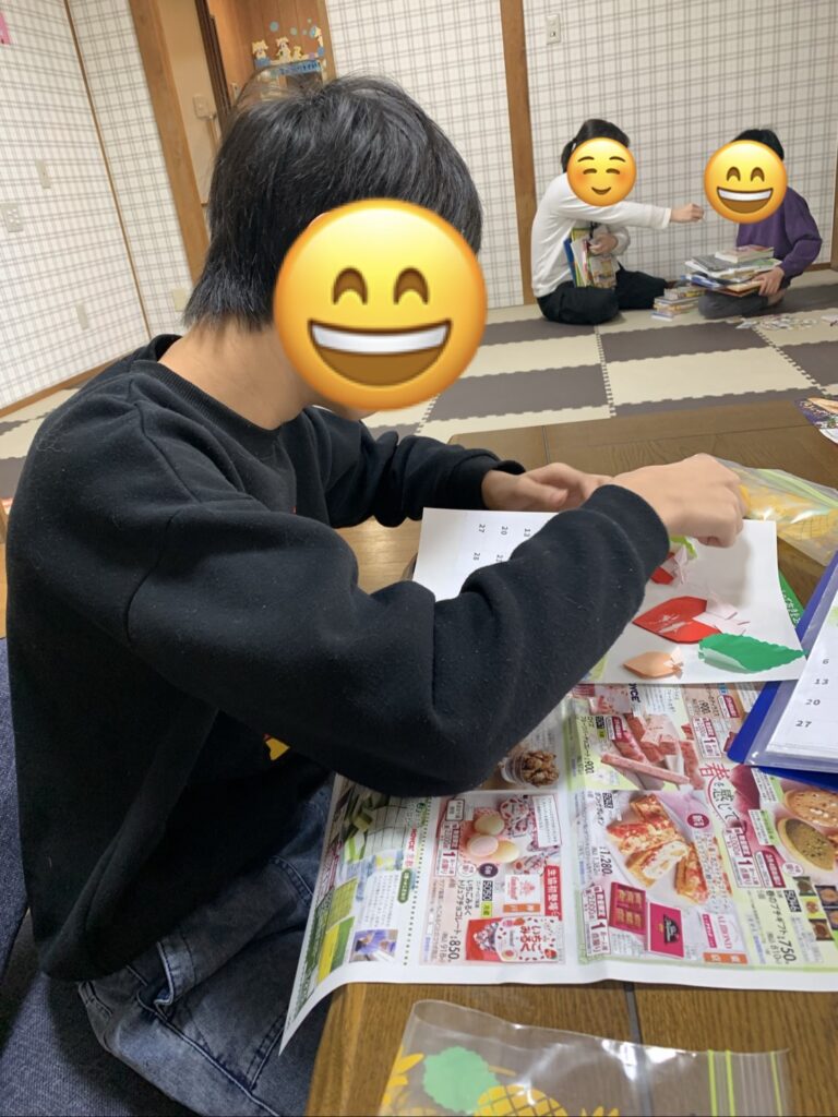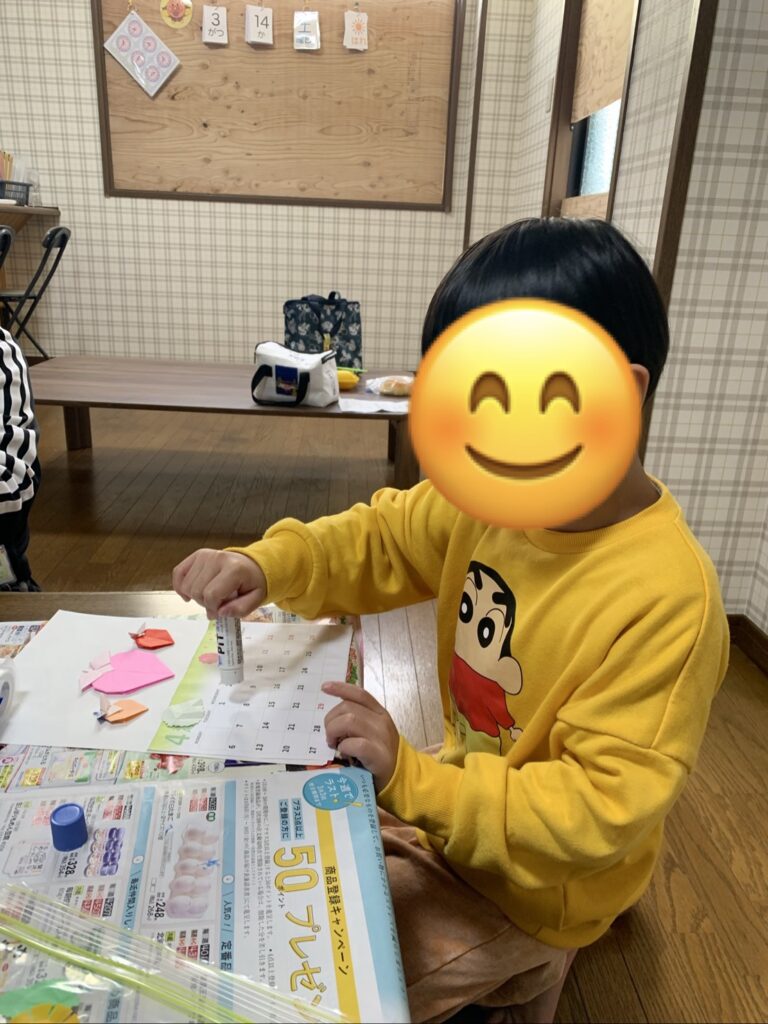 工作カレンダー作り✨ 2026-03-24 | コメントはまだありません 糊をつけて、どこにはろうかなあ~(*’▽’) イチゴや葉っぱをペタペタ・・・(*’▽’) お友達といっしょに、見本を見ながら仲良く制作しています。!(^^)! すこやかな庭 072-320-1401 児童の様子