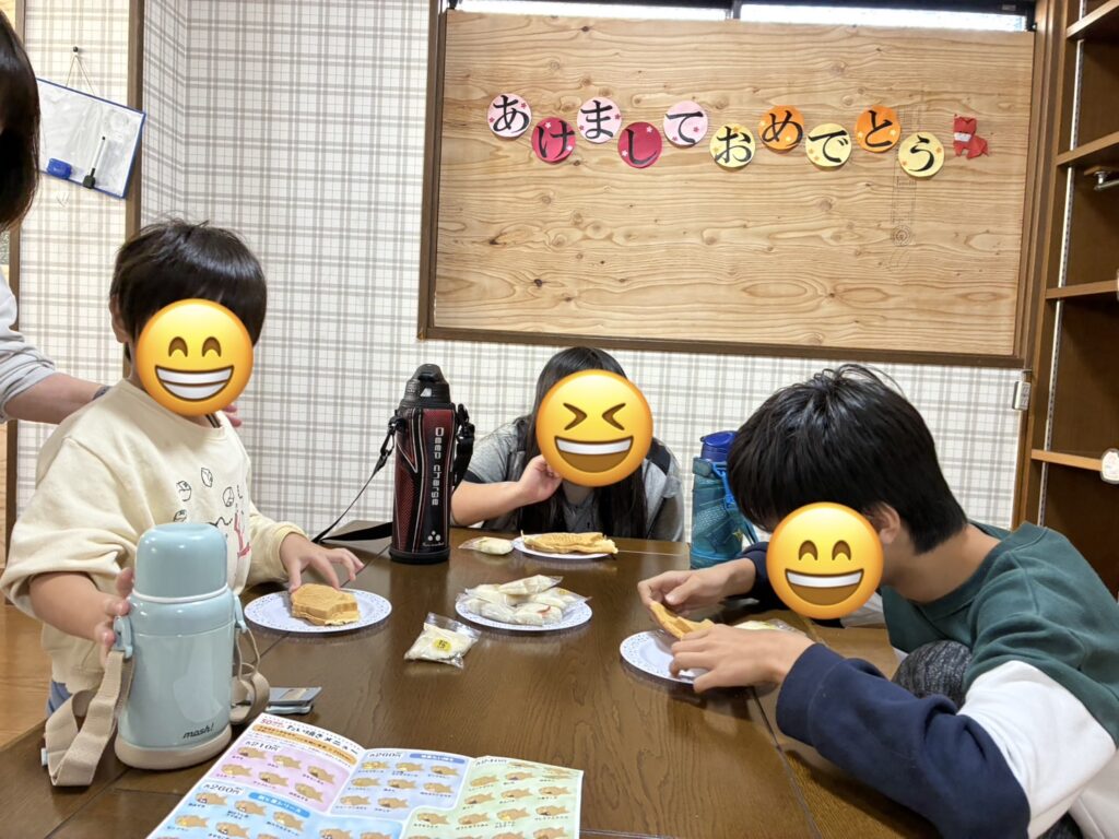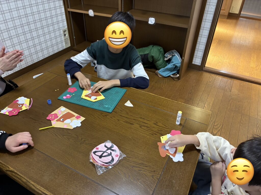 2026年新年会 2026-01-16 | コメントはまだありません 新年会をみんなで開きました😄 絵馬を工作しました♪ 楽しく作成中です(^▽^) 初詣に行って大きなお馬さんを発見😄 おみくじフリフリ~~😄 めでたい焼き✨おおきなたい焼きで喜んで食べてくれました😃 よい一年になりますように!!! すこやかな庭 072-320-1401 児童の様子